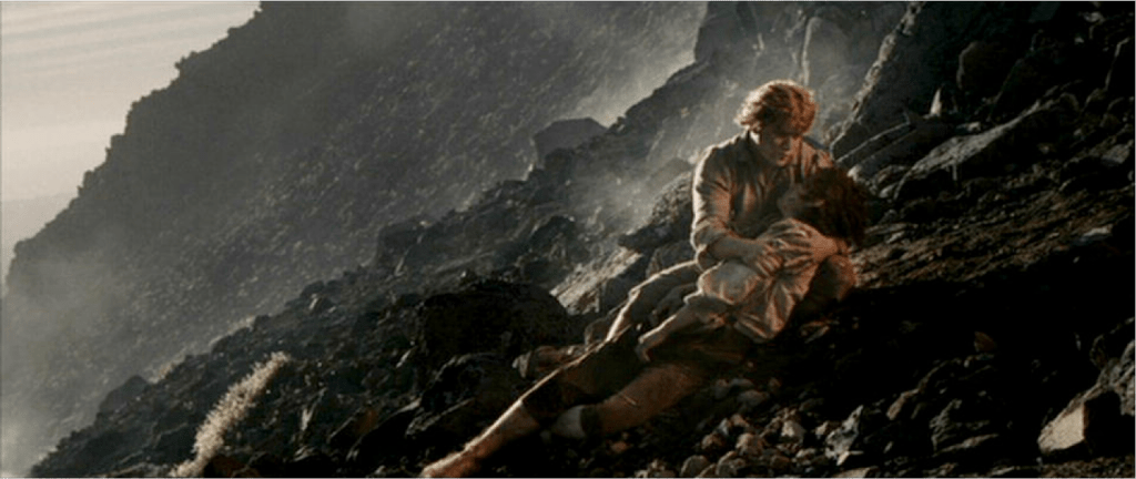 In The Lord of the Rings however, there is no either-or, and the true heroism is less easy to define. All the characters have their moment; all of our central Fellowship are heroes in their own unique ways. Sam is certainly the type of unsung hero that Tolkien modeled after the “batmen” of World War I, those brave and loyal attendants who were assigned to officers as an aide. Sam is certainly the character I want to be; though not as clearly my favorite vis-à-vis Frodo as Rodrigo to Carlo; rather, I want to be him because I so dearly love Frodo. Like Aragorn’s near-whisper in the Peter Jackson film, a cry of soldiering on when they believe all hope has been lost, “for Frodo.” We’ll keep fighting, though there is no apparent hope left, to honor Frodo’s sacrifice.