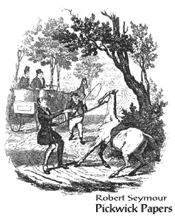 In between reading chapters of “Pickwick” I’ve been reading a lot of criticism and commentary on it, looking for interesting quotes & information to share. So far I’ve found that there are many different “takes” on the work. Is it a messy happy accident? Did, and if so when did, Dickens manage to get control of the project? Is it a novel or an extended sketch? Is it a mock-heroic tale, a quest, an allegory? Is it transcendental, mythological, spiritual, humanistic? Perhaps its greatness comes from its being so difficult to qualify on the one hand and yet so easily understood on the other. There is no mistaking the joy of life that exudes even in the face of misadventure or misfortune – the looking beyond the serious to find the silliness – that exists within these Papers. This is not to say we shouldn’t deal with the serious, only that we shouldn’t take it so, um, seriously!