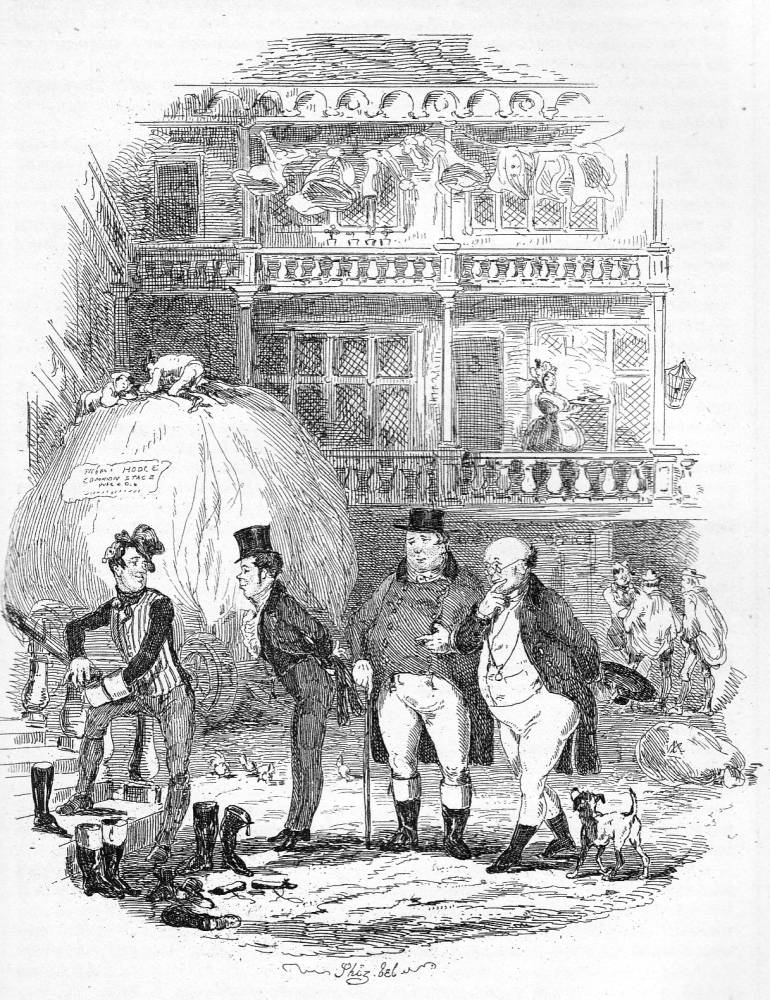 We begin Chapter 10 in one of “some half dozen old inns…Great, rambling, queer, old places they are, with galleries, and passages, and staircases, wide enough and antiquated enough to furnish materials for a hundred ghost stories…”