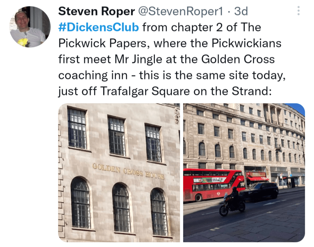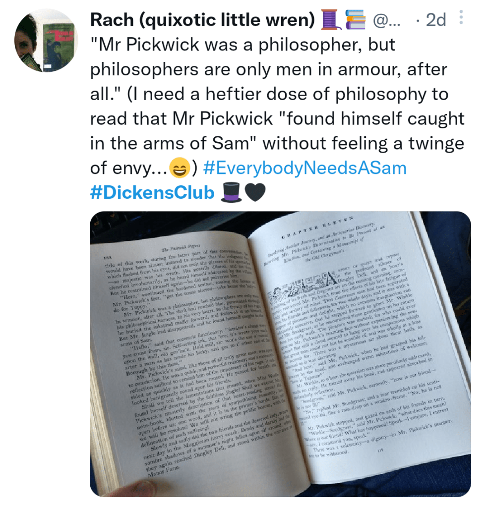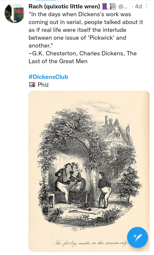I shared a link that our member Sarah put me on to, a delightful article about Pickwick‘s influence in bringing Dickens fans together. (And here we are, #DickensClub, carrying on the noble tradition!)