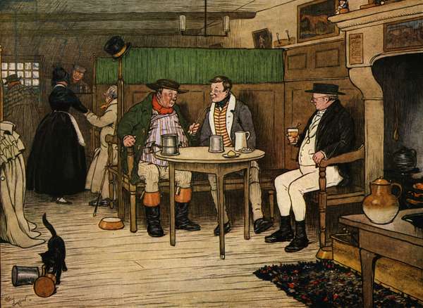 Meanwhile, we continue to pub-crawl with Pickwick and Sam, as they follow the directions to Mr. Perker’s clerk, Mr. Lowten, to the Magpie and Stump, where they are about to hear a curious tale from one of Mr. Lowten’s companions, to be revealed in the next chapter.
