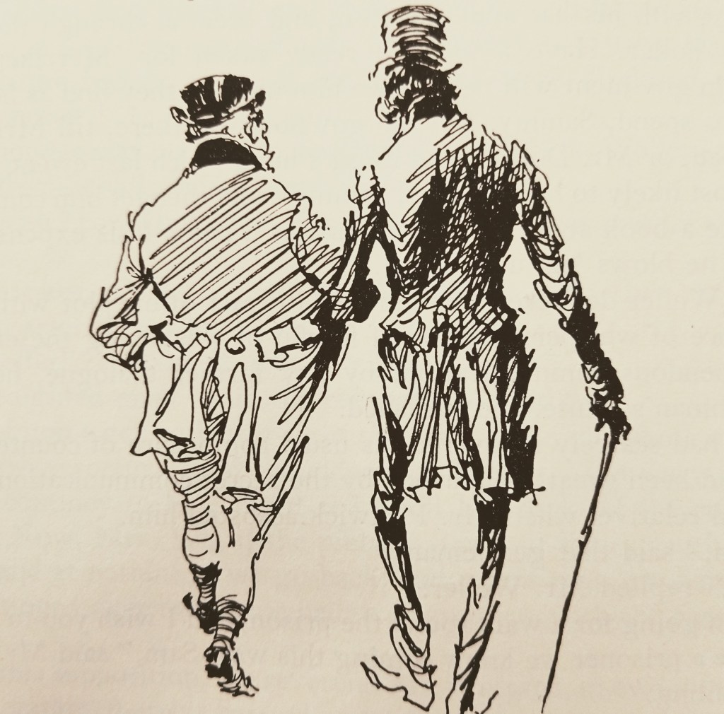 My own focus this week was primarily on what Lenny and I agreed was the “heart” of our whole journey with The Pickwick Papers; namely, the encounter between Pickwick and Jingle ~ and that between Sam and Job.