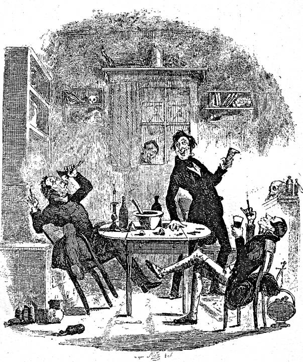 Sam is then visited by his father, his mother-in-law, and Mr. Stiggins. Temperance man though the latter is, he partakes in the “wanity” of negus in lieu of rum.