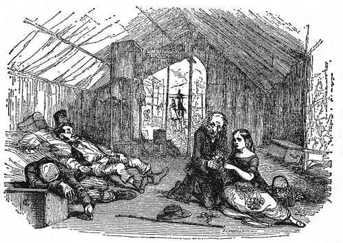 On encountering a quiet village, Nell and the grandfather befriend a kindly schoolmaster who offers them food and shelter on their journey. Nell tries to comfort the schoolmaster for his evident distress at the serious illness of one of his students that he cares for deeply. She and the grandfather decide to rest there a little longer, and Nell tries to repay the schoolmaster by doing chores and food preparation around the house. She visits the sick boy before he dies, and it is not only the schoolmaster that is so deeply affected by the death; Nell finds herself mysteriously touched and troubled by it too, as though it might foreshadow other sad events to come. They part warmly from the schoolmaster, who invites them to return if they pass that way again.