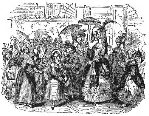 Nell’s essential loneliness comes to the fore as she loses ground in health due to the anxiety that her grandfather’s gambling obsession has started to consume him once again, and as she feels like she herself is feeding it in being compelled by him to give him all her earnings from Mrs. Jarley. Nell wishes she had someone to confide in, and wistfully imagines herself as one of a group of warmhearted sisters she observes. One of the sisters, Miss Edwards, is the pupil of the snobbish and cruel Mrs. Monflathers, and had performed a gesture of kindness towards Nell.