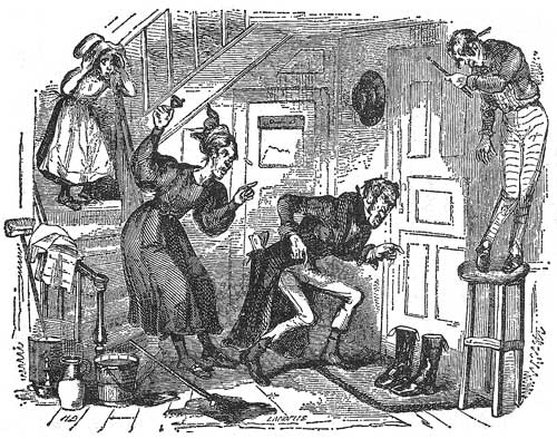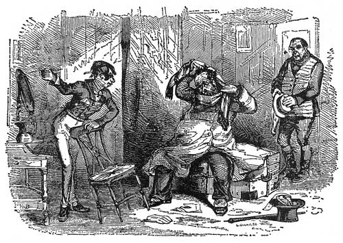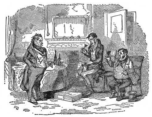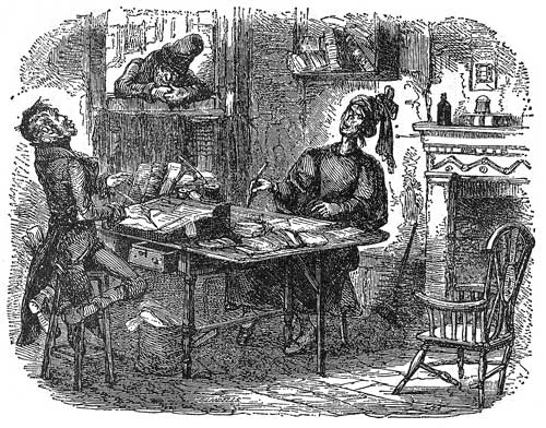 While the Brasses are away, Dick is requested by the small servant girl (whose residence in the house seems to have an air of mystery and suspicion about it) to introduce a prospective lodger to his room and to take the payment—both of which Mr. Swiveller does, with a bit added onto the sum. This mysterious single gentleman pays well in advance, and requests not to be disturbed.