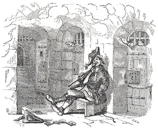 At last, a magistrate places Rudge in Newgate prison. Rudge, along with Stagg who has entered the scene, concocts a plan to get himself releasedβif Mrs. Rudge can be convinced to declare that he is not her husband, and that her own husband had died long ago.