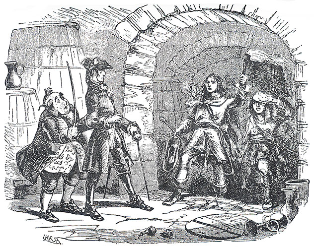 However, mobs are closing in and setting fires, and Haredale, who tries to get the vintner to save himself, is persuaded to go down into the cellar vaults, and they are rescued by Edward Chester and Joe Willet.