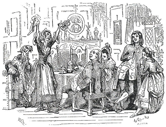 Meanwhile, Miggs, who foolishly imagined she would be welcomed back into the Vardens home, has returned, but is almost as speedily seen off again. Mrs. Varden has been tempered by the whole experience they have gone through.