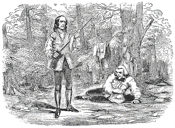 Before Haredale goes abroad, he makes a last stop to the remnants of the Warren (having passed the Maypole and glad to see there are signs of life again there), and finds Sir John Chester there. They duel, and Haredale runs Chester through.