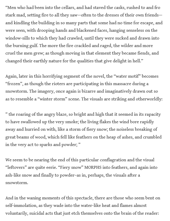 Lenny responds, wondering whether “Dickens is rapidly hewing his craft to new imaginative heights” and noting the crazy “self-destruction” of the rioters. He continues bringing out the metaphor in new forms–the ship image, the “frozen” water: