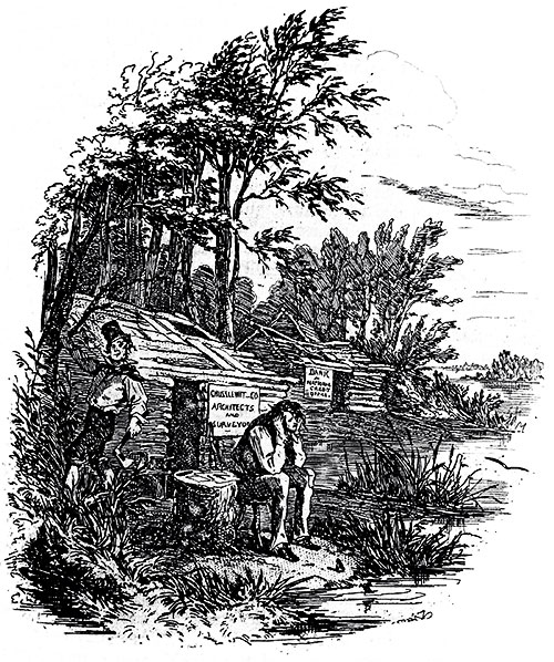 In America, Martin draws his faithful (but in this case, rightfully dubious) Mark Tapley into a scheme to purchase land in a place called “Eden,” inspired by General Choke who is to introduce them to an agent, Mr. Scadder. Martin condescendingly offers to make Mark his partner, though Mark is investing the larger sum of money between them. Martin then attends a meeting of the Watertoast Sympathizers, whose secretary is Mr. Kettle, and Martin is surprised by the extremely racist and pro-slavery positions among its members.