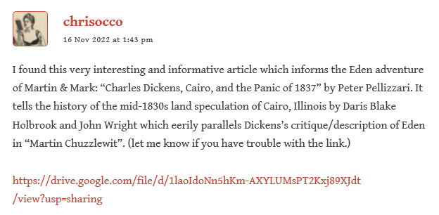 And for any more recent members or for those who might be interested in joining: the revised two-and-a-half year reading schedule can be found here. Boze’s introduction to American Notes and Martin Chuzzlewit can be found here; Chris’s supplement of Peter Ackroyd’s introductions can be found here. If you’ve been reading along with us but aren’t yet on the Member List, we would love to add you! Please feel free to message Rach here on the site, or on twitter.