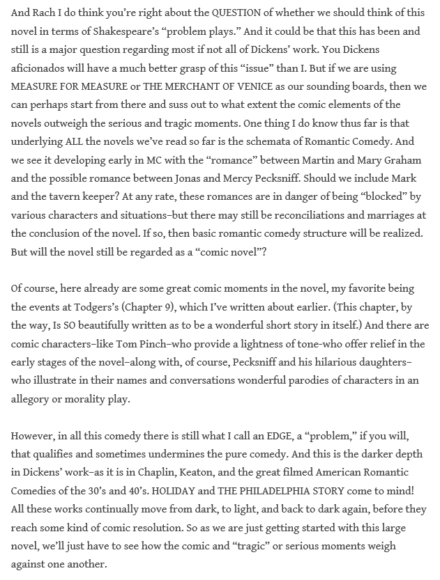 Lenny had brought us back earlier to this whole notion that we’ve begun discussing in relation to several aspects of Martin Chuzzlewit. With its “antihero,” its problematic comedy, its manipulations for good and ill…is this a “problem novel”?