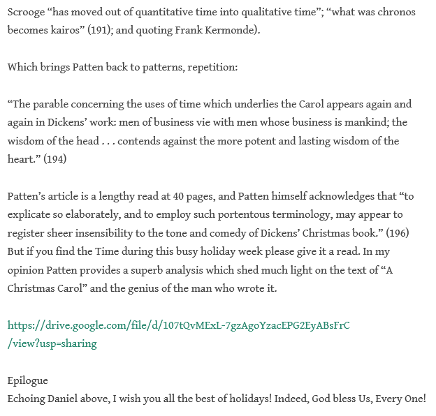 Chris analyzes the word “change” and the concept of “time” in A Christmas Carol so richly, inspired by the essay from Robert Patten’s articles on “Dickens, Time and Again”: