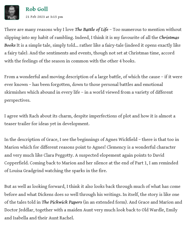 Rob beautifully discusses why The Battle of Life is his favorite Christmas book:
