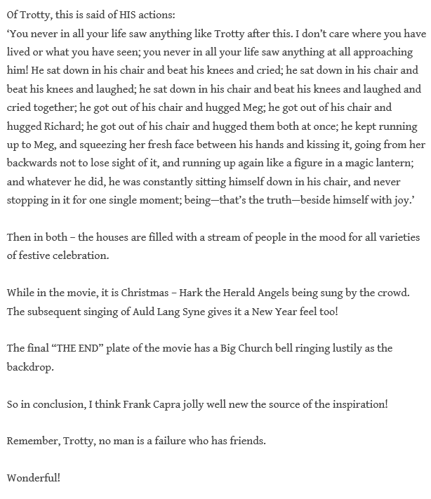 Stationmaster considers that the two Christmas books after A Christmas Carol (The Chimes and The Cricket) were like the light and shadow elements of the original story:
