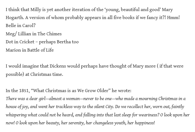 Rob shares thoughts on Milly–“yet another iteration” of Mary Hogarth: