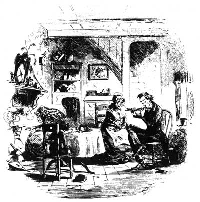 “Mrs. Gummidge’s peculiar corner of the fireside seemed to me to be the warmest and snuggest in the place, as her chair was certainly the easiest, but it didn’t suit her that day at all. She was constantly complaining of the cold, and of its occasioning a visitation in her back which she called ‘the creeps’. At last she shed tears on that subject, and said again that she was ‘a lone lorn creetur’ and everythink went contrary with her’.”