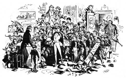 The boys start to arrive from their vacation, and David befriends Tommy Traddles, and a popular older boy, James Steerforth, who agrees to look out for David’s money (and directing its use), and takes David somewhat under his wing, telling him of Creakle’s unpopularity and his former failed business, so that the sign David has to wear doesn’t make him as much of an object of ridicule as David had feared. David idolizes the handsome Steerforth, and the latter has taken to his innocent companion.