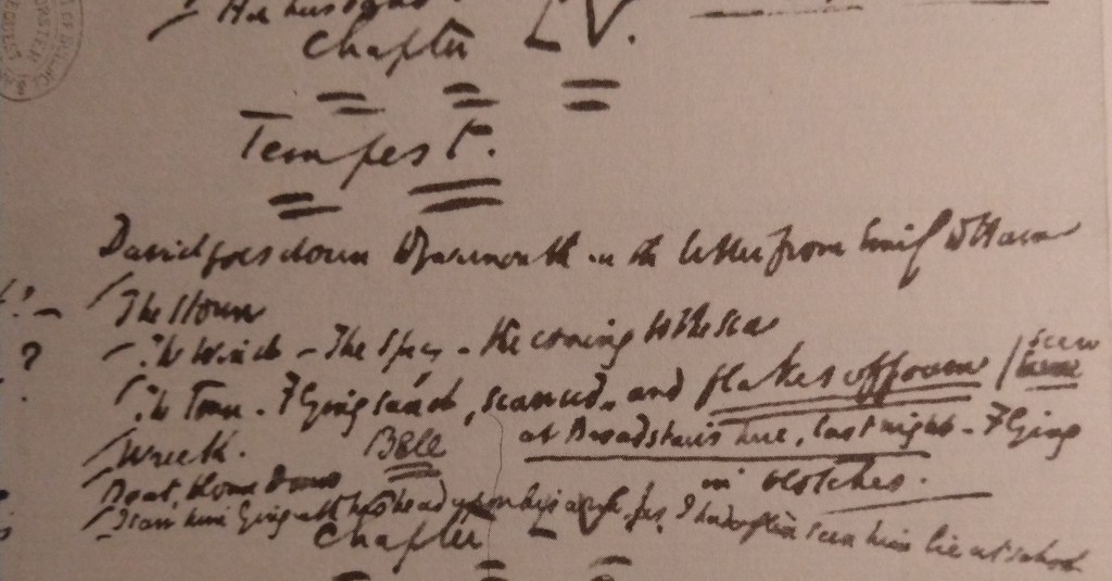 Zooming in now on the “Tempest” chapter that Stone discusses below, here are Dickens’s notes, with the typed transcription below: