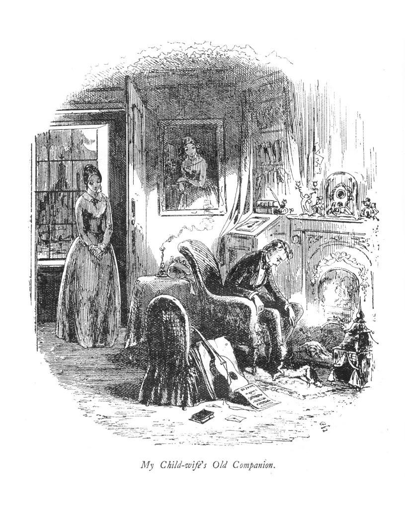 Back at home, David is distressed at Dora’s increased weakness, which appears now irrevocable. Jip, too, is a shadow of his former self, and has lost his spirit. Dora considers that it is “better as it is,” and feels the regret of marrying too young, afraid that David will have come to regret marrying her in time. David feels the sadness and reproach of her words.