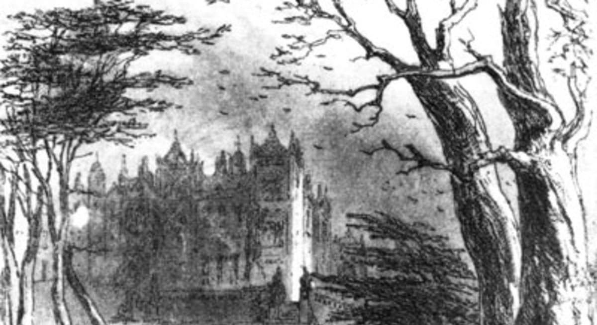 Later, when Guppy leaves, Mrs Rouncewell tells the story of the Ghost’s Walk–a feature on the Dedlock grounds–to her grandson and the new maid, Rosa. The story involves the division between a husband and wife during the reign of King Charles I. Due to the haughty lady’s differing political opinion and her anger at her husband’s side–and her ensuing sabotage by laming the horses who were to have been used to ride out for the king—the husband, catching her in the deed, struggled with her and broke her hip. Though lamed, she was able afterwards to walk there on the terrace, and would walk up and down almost obsessively, and, refusing her husband’s help, predicted a dismal future for the Dedlock house: