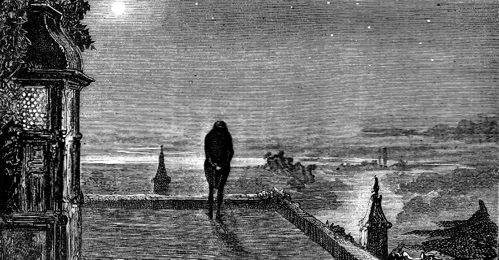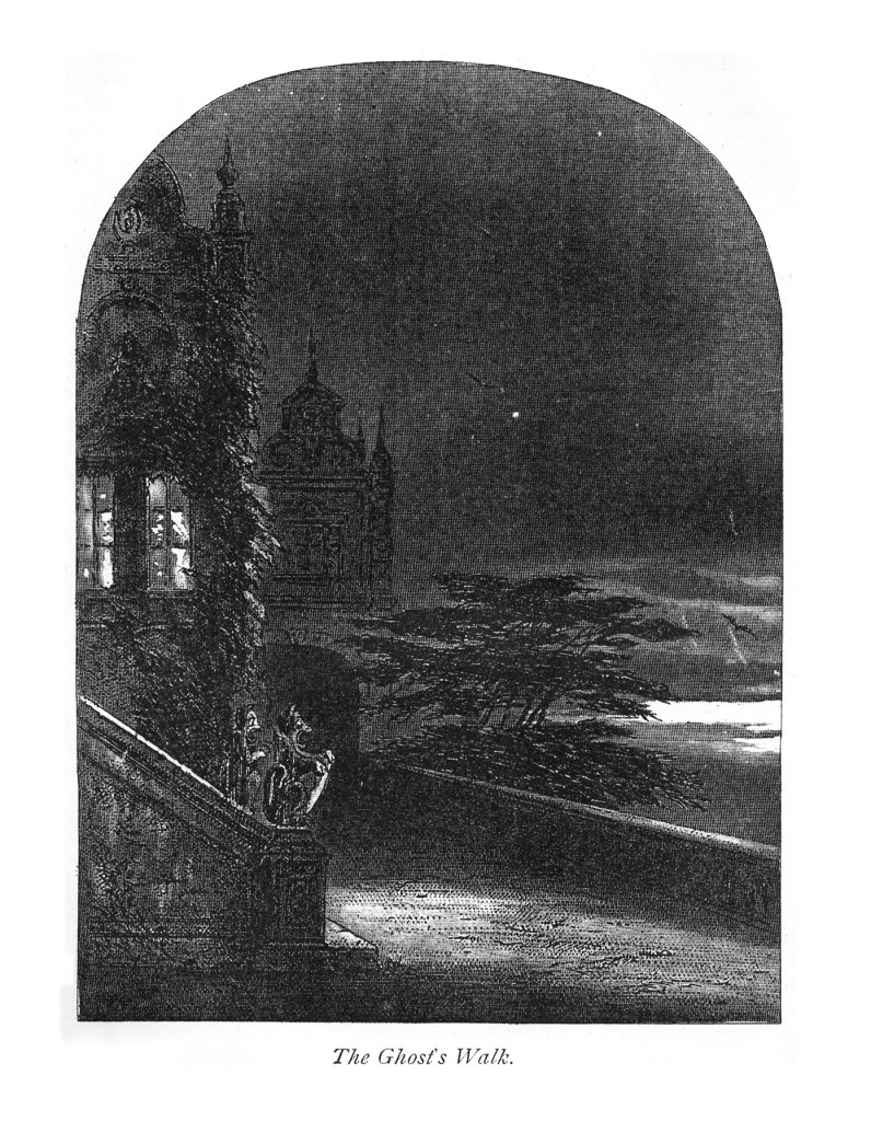 “…there was a dreadful truth in the legend of the Ghost’s Walk; that it was I, who was to bring calamity upon the stately house; and that my warning feet were haunting it even then. Seized with an augmented terror of myself which turned me cold, I ran from myself and everything, retraced the way by which I had come, and never paused until I had gained the lodge-gate, and the park lay sullen and black behind me.”