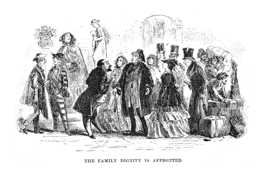 As they move to another inn, Mr Dorrit finds that one of their rooms has not yet been vacated by its former occupant, and Dorrit takes it as an insult to himself and his dignity—until the occupants (Mrs Merdle and Mr Sparkler) come to make their apologies in the most gracious manner, excusing the hotel staff entirely, and Mr Dorrit’s dignity is satisfied and he is eager to know the Merdles better.