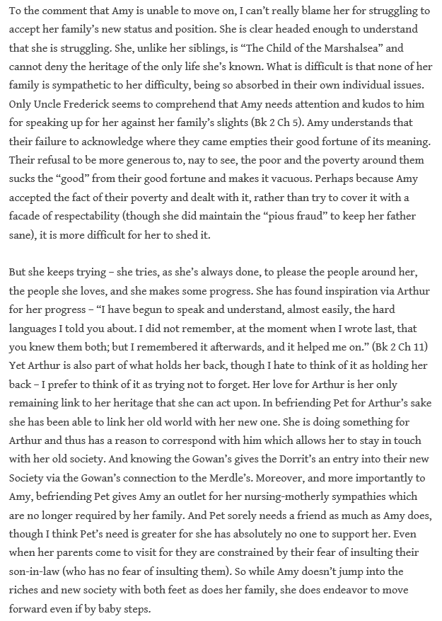 Amy Dorrit: Is there “Unhealthy” or “Selfish” In Her Attitude Towards Her Change in Circumstances?
