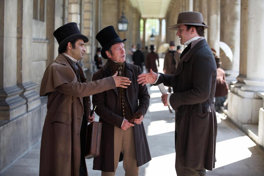 As Little Dorrit reenters the Marshalsea she hands Mr. Chivery Sr. his son’s hat. She can’t bear to look him in the face as she does so, and she doesn’t even try to look at John himself. “They always was a proud lot, the Dorrits was,” grumbles the elder Chivery. To his credit, John says, “I won’t hear a word said against her.” Once his father leaves, giving him some privacy, he composes a new, more depressing inscription for his tombstone. “Here lie the mortal remains of John Chivery, never anything worth mentioning, who died of a broken heart, requesting with his last breath that the word, Amy, be inscribed over his ashes which was accordingly done by his afflicted father.” Lots of credit to Russell Tovey for looking so goofy as this character while also being heartbreakingly earnest.
