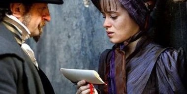 Mrs. Clennam reaches Amy before the bell rings and asks for the envelope. Without hesitating a second, Amy gives it to her, unopened. The adaptation adds a great beat here as Mrs. Clennam realizes she could just take it and Little Dorrit would never ask questions or be the wiser, but she can’t do that to her. Little Dorrit deserves to know the truth. Mrs. Clennam tells her to open the envelope and read the contents. To her amazement, Amy forgives her. In the book, the idea behind this is that Mrs. Clennam represents the Old Testament and Little Dorrit represents the New Testament or four particular books in it anyway. On the one hand, I’m good with this aspect being absent from the miniseries since I disagree with the idea, and I don’t like seeing ideas promoted I believe are wrong. On the other hand, without that philosophical/religious backdrop, the version of the scene in the miniseries is rather shallow by comparison. There’s no worldview behind it. Amy Dorrit just forgives Mrs. Clennam for suppressing the will and ruining her life and those of her family members because, well, because that’s just in her character. Then again, you could argue that this act of forgiveness is so powerful, one of the most powerful Dickens ever wrote really, that it doesn’t need a philosophy behind it. Indeed, the power of this scene goes a long time toward redeeming the finale from its storytelling problems. Judy Parfitt is really great in it.