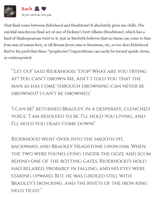 After Drood, we will have our final Zoom chat in our chronological readalong (SAVE THE DATE: Sat, 5 October, 2024!) with additional opportunities to either share final theories about Drood, or to post final retrospectives on our whole nearly-three-year reading journey together. We will also consider the question of where the #DickensClub will go from here, and whether we wish to continue reading Dickens (or another author) together in another, more gradual format, or whether simply to write a final “THE END” to this Inimitable journey.