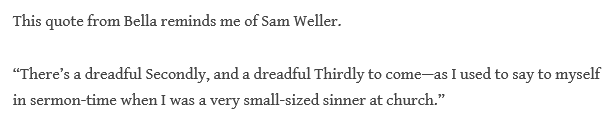 This journey has been filled with delight, insight, and continual enrichment of understanding about the genius and mastery of Dickens. What a remarkable capacity for crafting worlds–characters, plots, places . . . with a profound sense of the arc of the moral universe.