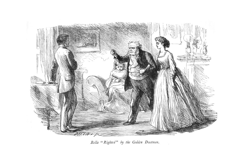 Bella is beginning to think that fortune is spoiling the goodness of Mr Boffin, as she reluctantly confesses to her father.