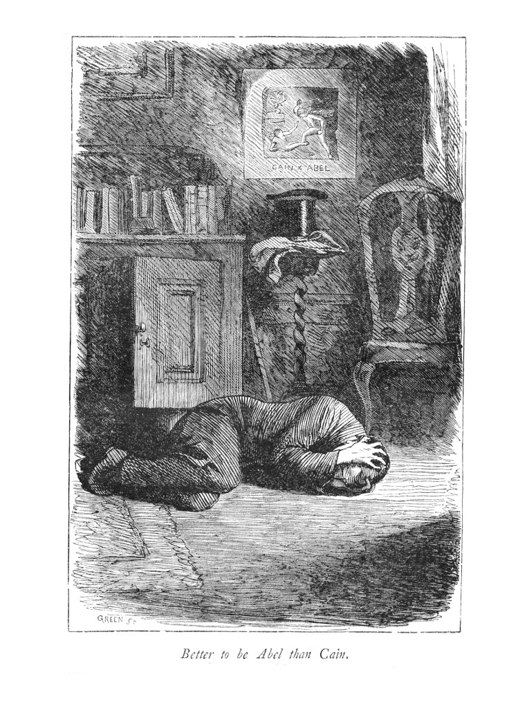 ββNow, scoundrel,β he pursued, βI am going to finish. You supposed me just now, to be the possessor of my fatherβs property.βSo I am. But through any act of my fatherβs, or by any right I have? No. Through the munificence of Mr Boffin. The conditions that he made with me, before parting with the secret of the Dutch bottle, were, that I should take the fortune, and that he should take his Mound and no more. I owe everything I possess, solely to the disinterestedness, uprightness, tenderness, goodness (there are no words to satisfy me) of Mr and Mrs Boffin. And when, knowing what I knew, I saw such a mud-worm as you presume to rise in this house against this noble soul, the wonder is,β added John Harmon through his clenched teeth, and with a very ugly turn indeed on Weggβs cravat, βthat I didnβt try to twist your head off, and fling that out of window!ββ