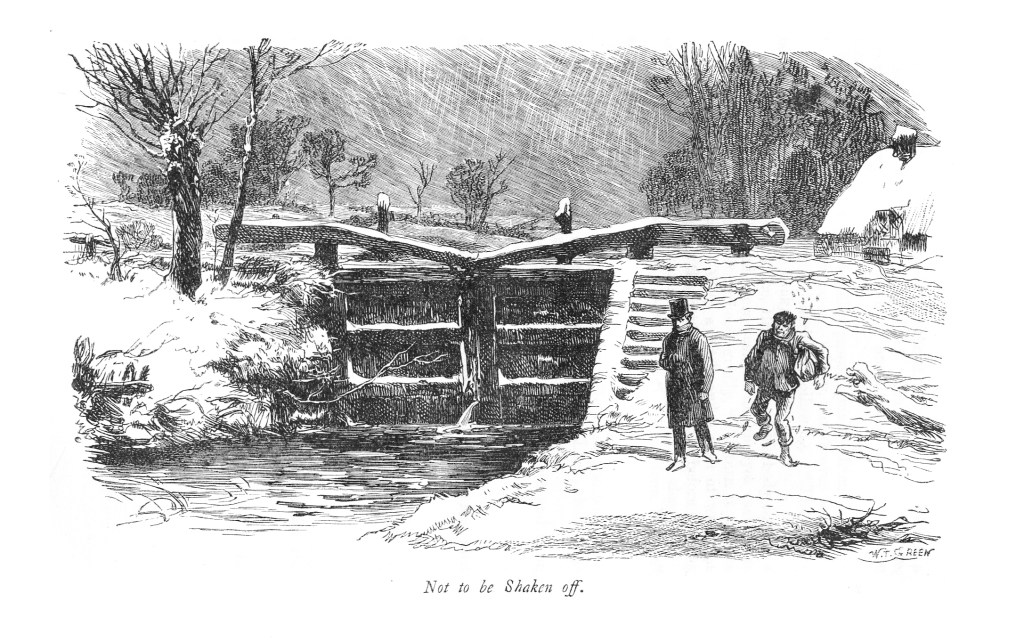 In his sleepless haunting of the city, Headstone meets Riderhood, who has just gotten a job upriver, at the Plashwater Weir Mill Lock. Headstone asks about Lizzie and Eugene, and whether they have been seen together, suggesting that Riderhood might to himβHeadstoneβsome service for payment in future.